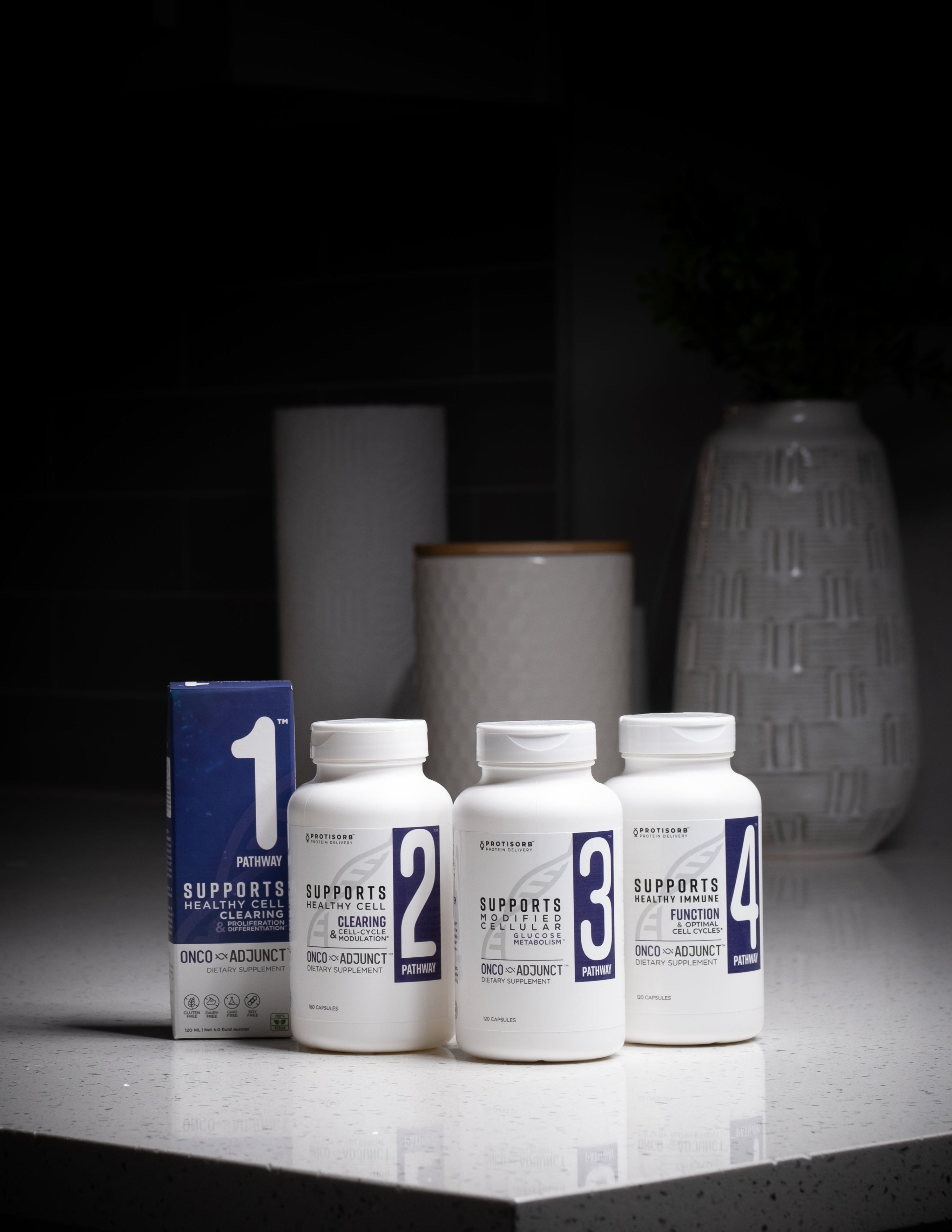 The ONCO-ADJUNCT™ Pathway system is a comprehensive line of nutritional supplements designed to support cellular health, enhance immune function, and promote optimal metabolic pathways.* This system consists of the following specialized formulations: